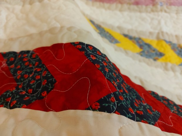Size / Dimensions: 77″ X 84″ Queen 100 Percent Cotton Machine Quilted. Binding Hand Stitched White Backing Machine Washable (Gentle Cycle)